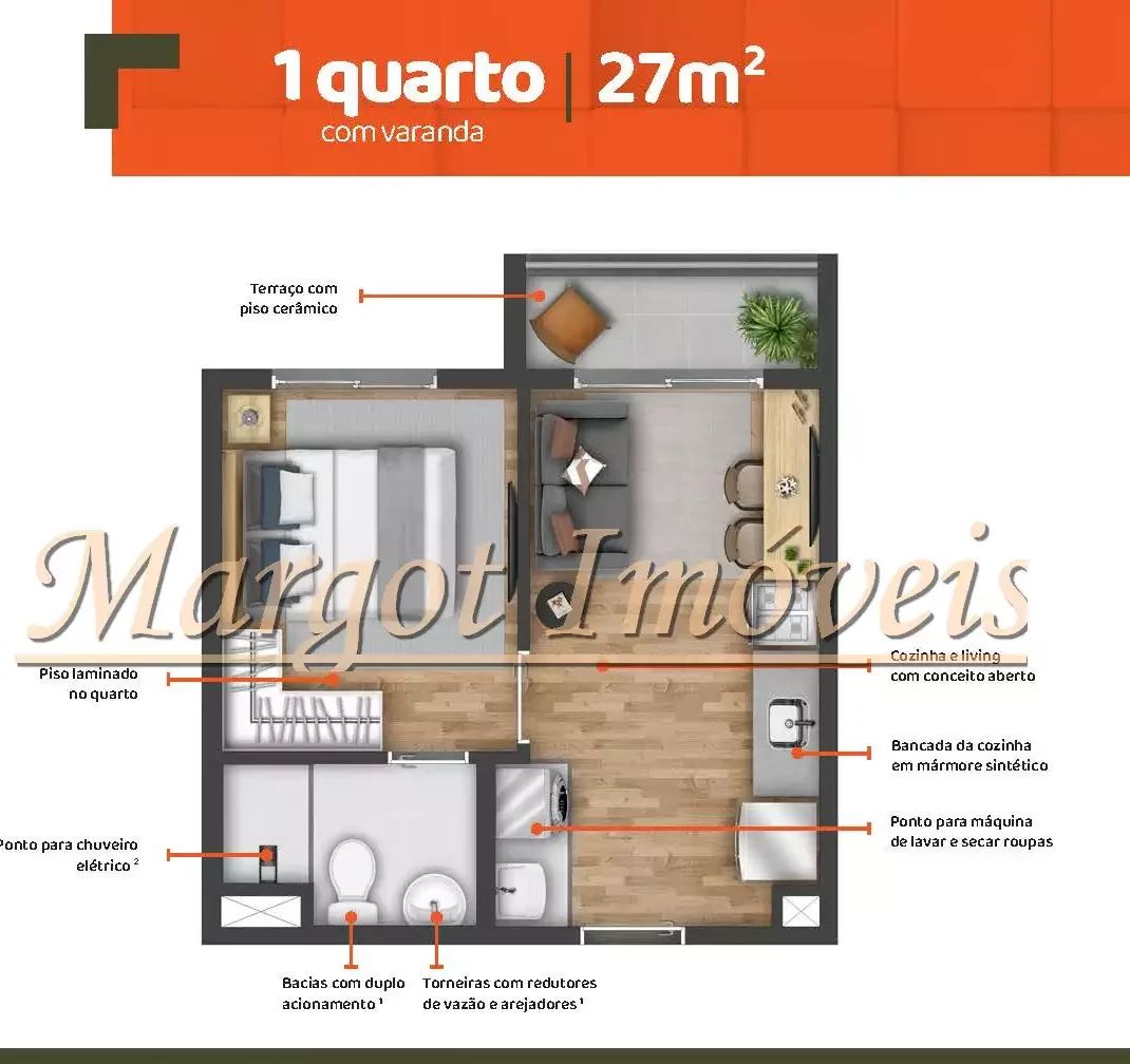 1 Quarto Com Varanda 27m² R$ 229.900